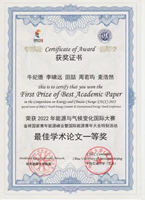 建筑环境与设备工程系田喆教授指导博士后牛纪德、研究生李啸远、周若屿、麦浩然同学团队的论文“Flexible multi-objective optimization planning method for distributed energy system based on multi-operation scenarios”荣获能源与气候变化国际大赛学术赛道最佳学术论文一等奖。