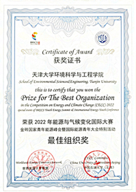 建筑环境与设备工程系邓娜副教授组织了多学科交叉国际合作团队,与机械学院赵军教授、张俊峰副教授、浙江建设职业技术学院赵鹏程老师和巴基斯坦教育大学Muhammad Tahir副教授,联合指导天津大学环境学院、机械学院、自动化学院、经管学部、建筑学院、新加坡国立大学的本、硕、博和留学生团队,许文娟、姚熙原、王跃锜、赵茀含、富星语、陆师慧、Agnes S. Ellie,顾耀楠和陈天一的实践调研成果“Investigation on Public Response Based on Low Carbon Economy, Energy Conservation and Emission Reduction based on VAR Model”荣获能源与气候变化国际大赛实践赛道优胜奖。