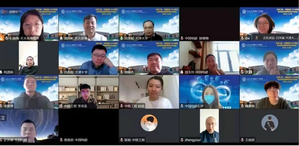 关静主任在致辞中指出,校企联合硕博士培养工作是研究生院的重点工作之一,希望各学院和企业建立起完善的校企层面工作交流机制,依托企业工程实践优势以及天津大学学科实力不断提升学生培养质量,更好的服务国家工程、科技、产业发现需求。随后,吕学斌副院长介绍了环境学院的整体概况,中核工程人力资源部赵晶副主任就中核工程与天大的早期合作历史,中核工程企业的历史沿革、公司定位、区域布局、品牌实力、研发设计能力、工程承包能力、国际合作以及校企合作的现有成效方面进行了详细的介绍。中核工程核化工院刘权卫主任作为企业导师,介绍了其主要从事的研究领域及研究实力。中电研人力资源部部长陈敏敏介绍了中电研的整体概况,其主要有四个业务板块:成套装备、微排检测、材料化工、实业。其中与暖通方向研究生对接的中电研成套装备公司周玉玲总经理介绍了广州擎天电器工业有限公司的业务方向,业务范围,指出了我们学生的对接领域为实验装备公司,主要负责实验装备的设计、安装和调试方向研究。联合培养企业导师、中电研首席专家郑毅穗就其主要从事的研究方向:环境实验技术、制冷技术结合电器控制等成套实验装备进行介绍,并提出新能源汽车热管理系统检测设备开发、环境舱空气调剂模拟仿真、氢燃料电池发动机检测实验设备等9大主要研发方向。校内导师刘庆岭、刘俊杰、吕石磊老师就主要研究方向以及学生情况进行了介绍。作为校内导师的刘庆岭副院长在听取了企业研究内容介绍后,提出与中核工程企业可在voc材料的合成应用与测试,核工业后处理、检测仪器、关键核心材料研发方面进行深度合作。刘俊杰教授建议结合学生培养周期尽快制定学生深入企业现场的培养时间表,并建议开展不限于联合培养项目方面的多方面校企合作。校内吕石磊教授结合团队研究方向提出新能源汽车热管理系统检测设备方面的合作建议,并表示在企业提出的环境舱空气调剂模拟仿真方面也可开展合作。