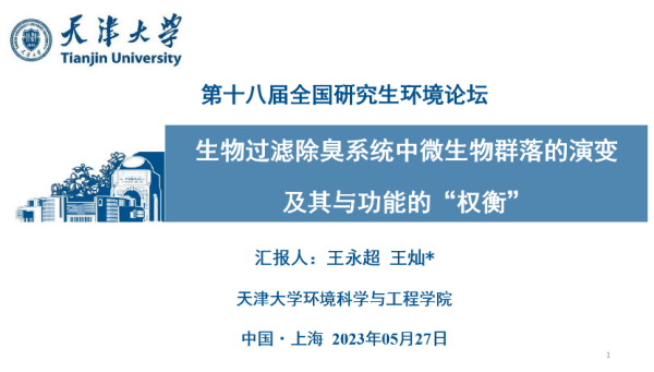 其中,环境学院博士研究生王永超在本次论坛中作了题为“生物过滤除臭系统中微生物群落的演变及其与功能的“权衡”的口头报告,得到评委老师和与会同学的高度关注。