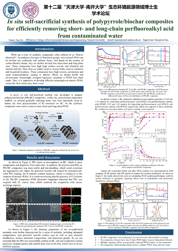 16、喻豪 --原位自牺牲合成聚吡咯生物炭复合材料高效去除水中长链和短链全氟烷酸化合物
