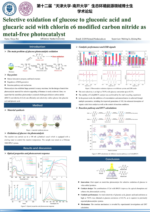 1、 白新宇--氮化碳/光敏化剂复合材料光催化氧化葡萄糖制备高价值有机酸
