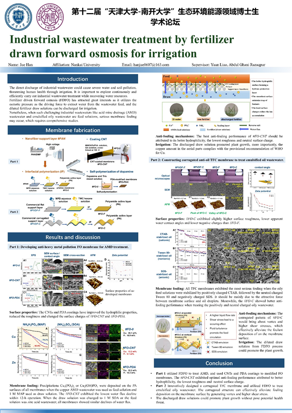3、 韩珏 --肥料汲取正渗透过程处理工业废水并用于农业灌溉