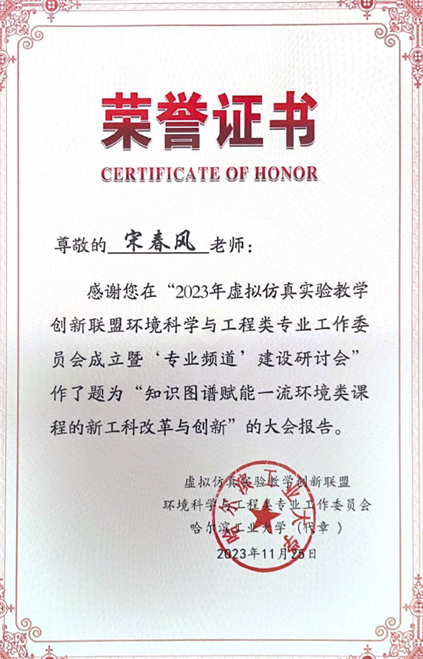 会上,我院副院长宋春风教授受聘联盟环境科学与工程类专委会副主任委员,并作《知识图谱赋能一流环境类课程的新工科改革与创新》的大会报告。