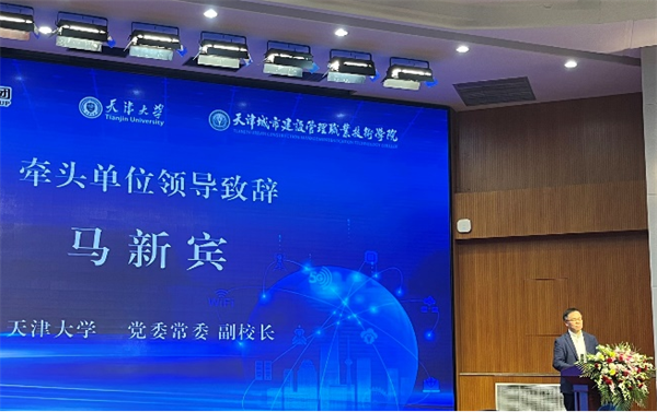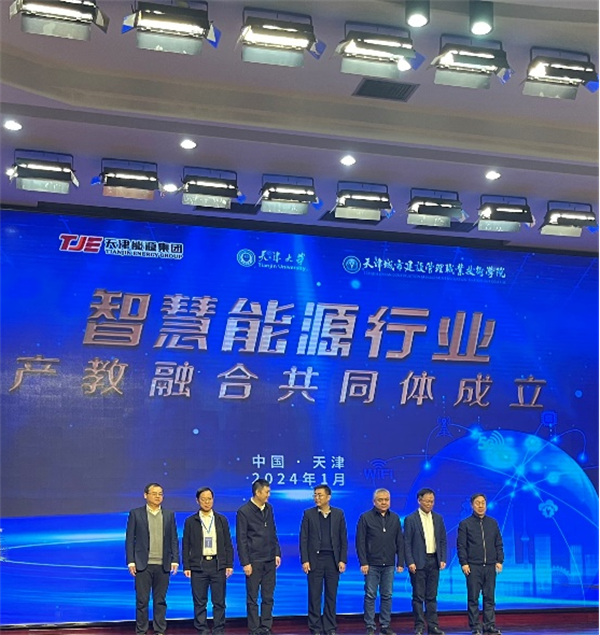 1月3日上午,由天津大学环境科学与工程学院与天津能源投资集团有限公司、天津城市建设管理职业技术学院共同牵头的智慧能源行业产教融合共同体成立大会在天津举行,来自智慧能源行业的相关高校、高职、企事业单位等共百余家单位出席此次大会。天津市国资委党委副书记王洪、天津市教委二级巡视员苏丹、天津能源集团党委副书记/总经理裴连军、天津城建大学党委常委副校长陈志华、天津科技大学党委常委副校长高发明、沈阳航空航天大学副校长卫海桥、天津职业大学原校长/全国职业高等院校校长联席会议主席董刚出席成立大会。天津大学党委常委副校长马新宾出席并致辞,天津大学教务处处长王世斌、天津大学环境科学与工程学院院长邱顺添、副院长宋春风、建环系教师丁研、中心实验室鲁逸人等出席成立大会。