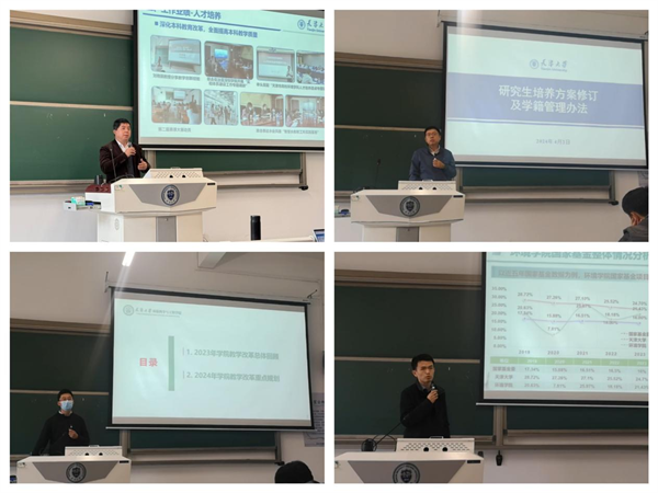 院长邱顺添回顾了学院2023年重点工作完成情况及成绩,对全院教职工的努力表示感谢,并对2024年重点工作进行了部署。他指出,生态文明建设被提到前所未有的战略高度,学院也即将整体搬迁新环境大楼,大家要抓好新环境大楼机遇,发挥优秀人才引领作用,提升团队实力,实现良性发展。学院各分管院长就今年重点工作进行了部署和强调,包括分类修订高层次拔尖创新人才培养方案,开展有组织的教学及数智化课程建设,自由探索与有组织科研、讲好故事、重大项目申报和开展常态化科技前沿论坛等。