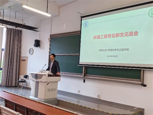 会议首先由宋春风副院长致辞。宋院长从自身本科-硕士-博士阶段的学习经历出发,为同学们讲述了环境工程专业的学科交叉融合特色以及发展潜力。鼓励同学们大学期间做好学习规划,兼顾学习和生活,向目标不断奋斗。