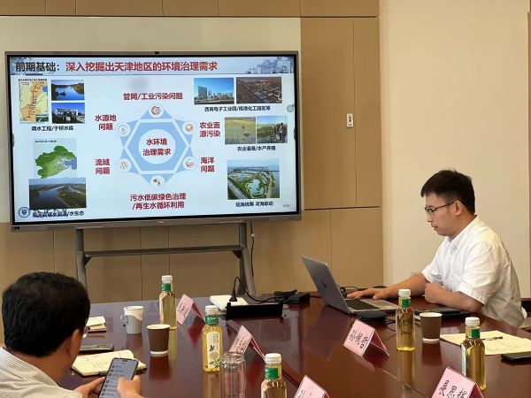 孙永利院长还听取了环境学院代表教师相关研究工作汇报,从低碳污水系统构建、天津农业农村污水及流域治理技术需求、水源中污染物风险评估及控制策略分析等三个方面介绍了我院教师在水处理领域的最新研究进展。孙永利院长对老师们的工作给出高度评价,建议未来研究课题要更多的结合天津市黑臭水体治理与污水处理需求,也进一步指出应从“源头-过程-末端”控制开展切实可落地工程应用的技术体系开发。