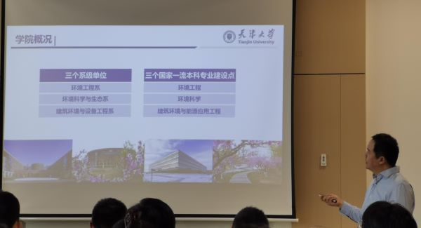 图6 展思辉介绍天津大学环境学院基本情况和未来规划