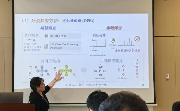 北京大学环境科学与工程学院孙卫玲教授做了题为“水体新污染物高通量筛查与定量溯源”的学术报告。孙教授以水体中新污染物为切入点,强调了筛查与溯源新污染物的重要性,指出其对环境保护和公共健康的影响。她结合自身研究案例,系统介绍了新污染物高通量筛查的系列策略与方法,以及定量溯源技术。报告中详细讲解了污染物非靶分类筛查-模型定量方法、高分辨质谱非靶指纹数据定量溯源等团队的创新研究成果。此次报告为应对水体污染提供了新的视角和实践路径,推动了领域内的深入探索。
