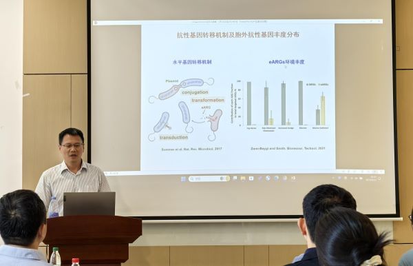 北京大学城市与环境学院朱东强教授做题目为“典型抗生素环境界面过程及抗性效应研究”的学术报告。在全球抗生素使用及抗性基因分布的背景下,朱教授通过具体案例阐述了对于某些抗生素,未必需要采用高级氧化等高能耗、高化学品成本的处理方法以实现其完全矿化。相反,通过有目的地改变抗生素的结构,使其失去抗性活性,可以实现更加精准的污染治理。报告重点探讨了抗生素在环境中的行为及其对生态系统的潜在影响,提供了未来污染治理的新思路和启示。