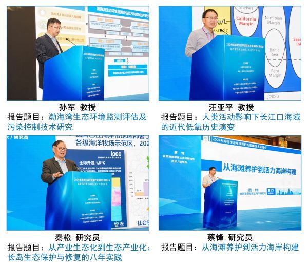 天津大学环境与生态研究院院长白敏冬教授和中国环境科学学会秘书长助理陈永梅致开幕辞,中国工程院院士、自然资源部第二海洋研究所研究员潘德炉,中国科学院院士、海洋负排放国际大科学计划首席科学家焦念志,中国工程院院士、崂山国家实验室研究员王军成,天津大学白敏冬教授,中国地质大学(武汉)孙军教授,华东师范大学汪亚平教授,中国科学院烟台海岸带研究所秦松研究员,自然资源部第三海洋研究所蔡锋研究员作大会主旨报告,王军成院士和白敏冬教授分别主持。