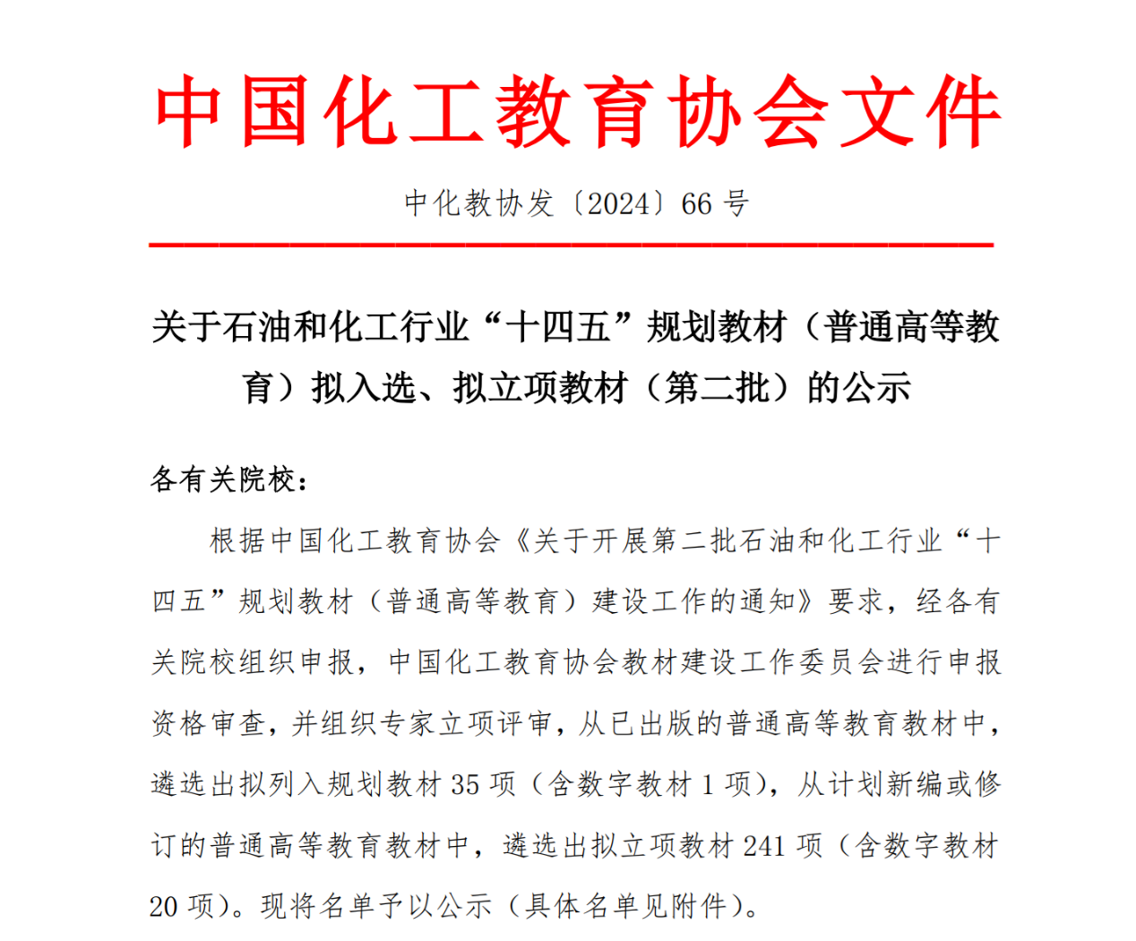 本次中国化工教育协会规划建设的教材旨在反映当前我国石油和化工行业及相近相关专业的科研、生产、教学发展的新成果,深化产教融合、校企合作,积极探索新形态教材建设与数字化教学资源开发,提升相关领域高等教育的引领性。