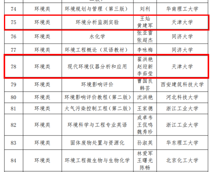 日前,中国化工教育协会发布《关于第一批石油和化工行业“十四五”规划教材(普通高等教育)的立项通知》,天津大学环境科学与工程学院“环境监测教学”团队的两本教材《环境分析监测实验》和《现代环境仪器分析和应用》成功入选“石油和化工行业‘十四五’规划教材(普通高等教育)”。