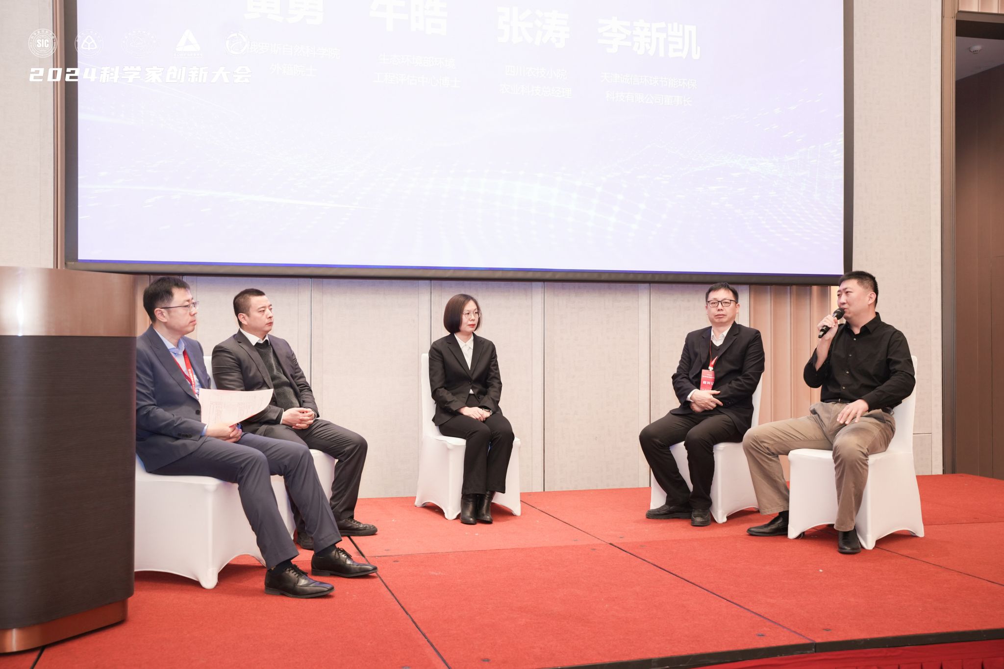 在圆桌对话环节,黄勇院士、生态环境部环境工程评估中心牛皓博士、四川农技小院农业科技张涛总经理、天津诚信环球节能环保科技有限公司李新凯董事长四位来着不同领域的专家,围绕“如何构建绿色循环的新型生产力”这一主题进行了深入的讨论。