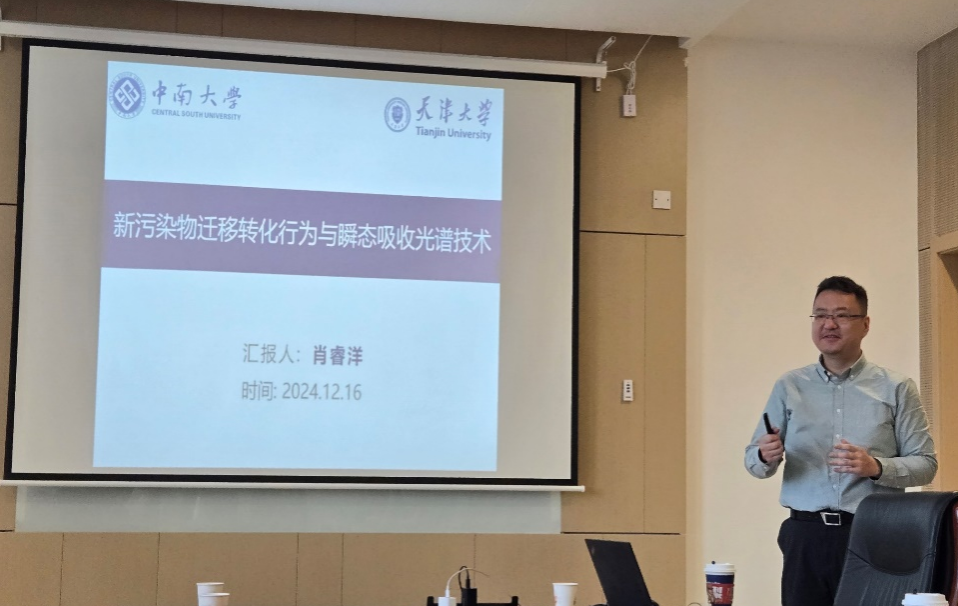 2024年12月,新污染物交叉中心在北洋园校区59楼会议室成功举办两场高水平学术报告活动。本次系列报告特别邀请了中南大学冶金与环境学院肖睿洋教授与辛辛那提大学(University of Cincinnati)工程与应用科学学院钮希之教授(Prof. Xi-Zhi Niu)作为特邀嘉宾,分别就新污染物的迁移、转化机制及其分析技术进行了专题报告。活动由院长助理孙佩哲教授主持,学院专业教师及博士、硕士研究生积极参与。