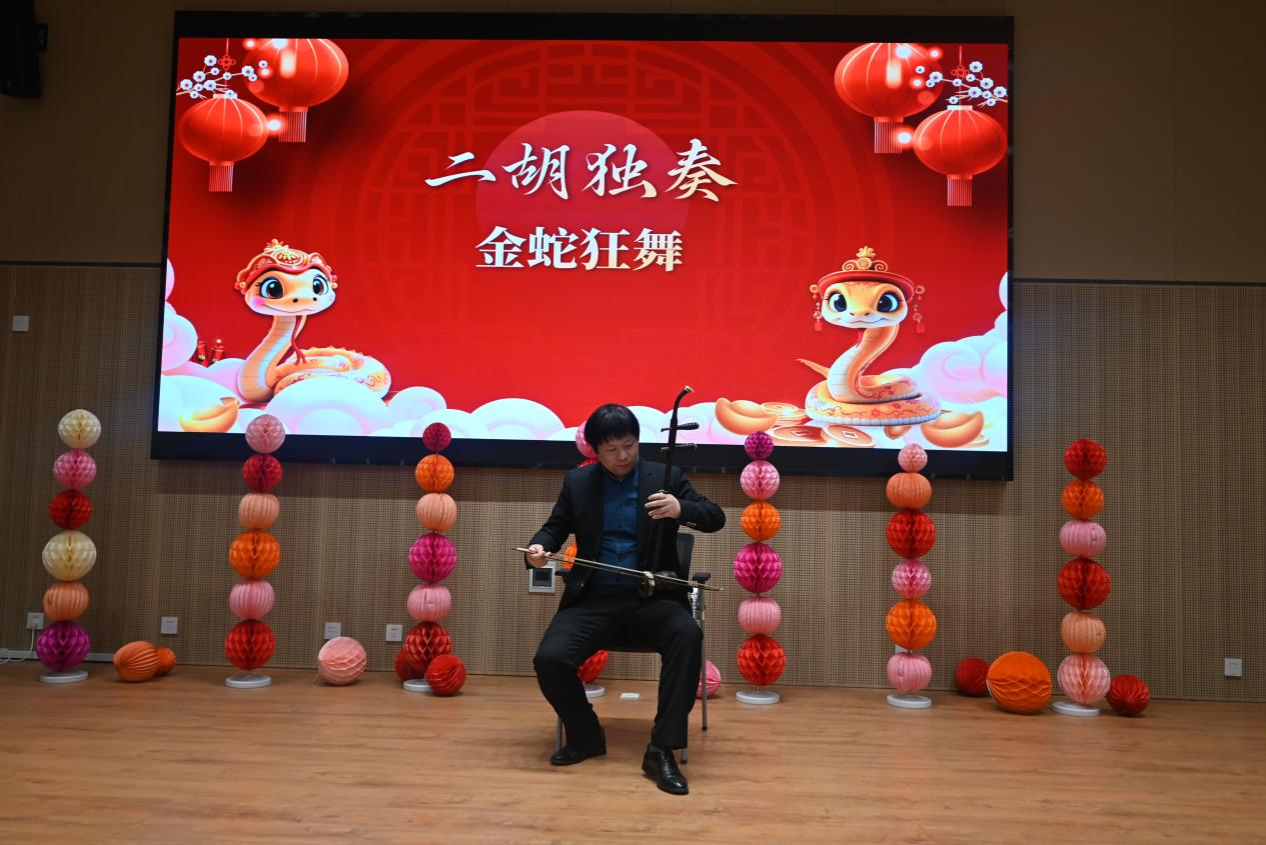 下半场,进入到联欢会节目表演和游戏环节,来自三个系以及办公室、学工办的老师们纷纷登场献艺,全体老师展现了讲台之外的独特个人魅力,二胡独奏、诗朗诵、歌曲联唱、舞台剧等精彩节目不断上演,为现场观众奉上一场精彩纷呈的视听盛宴。在“表情包猜成语”、“你划我猜”等游戏环节中,老师们欢乐搞笑的游戏画面,让全场的笑声和掌声一直持续不断。最后,在大家共同的新年祝福声中,元旦联欢会圆满结束。