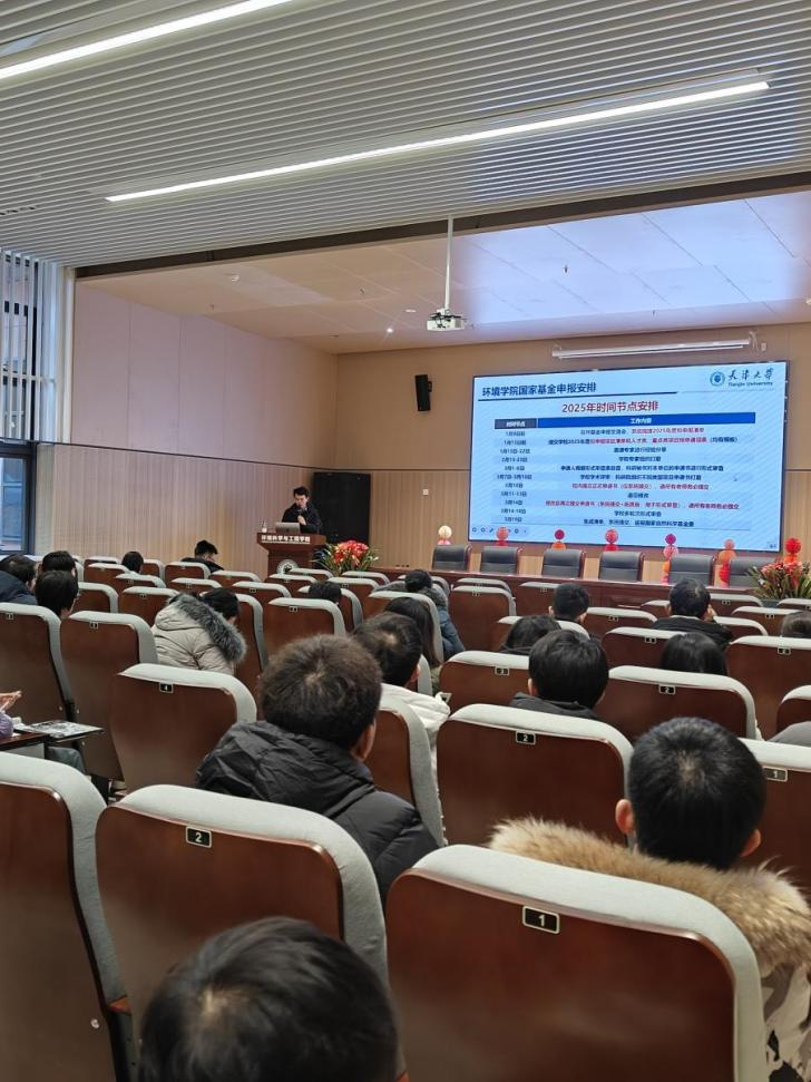 随后,程占军副院长就2025年度国家自然科学基金申报工作进行动员汇报。程院长从申报项数、资助情况、资助经费等方面带领老师们一起回顾了2024年国家基金基本情况,并重点分析了环境学院在上一年度国家基金申报的主要问题;同时针对学院相关学科E10环境工程、B06环境化学、D07环境地球科学、E0803建筑物理、E06工程热物理与能源利用在上一年度的申报情况进行了分析。对2025年国家基金改革情况与举措进行了提醒:包括前移创新研究群体项目资助端口、探索建立非共识项目遴选资助机制,推动原始创新和颠覆性创新等方面。会议最后程院长就环境学院2025年度国家自然科学基金申请工作进行了整体部署。此次会议旨在提升环境学院教师2025年基金申报的积极性及申报质量,并强调其对科研人员成长和学院发展的重要性。