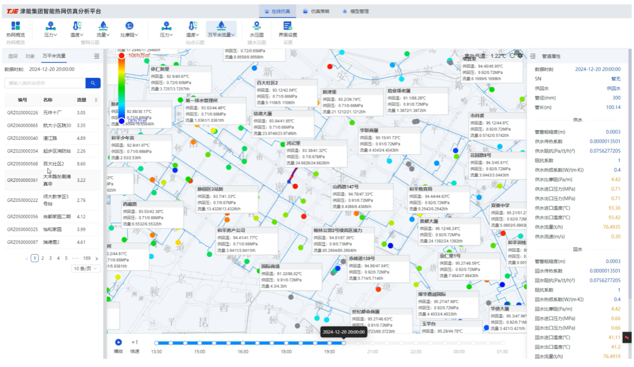 图5 天津市中心城区大热网1800余个换热站万平米流量动态分布的在线仿真