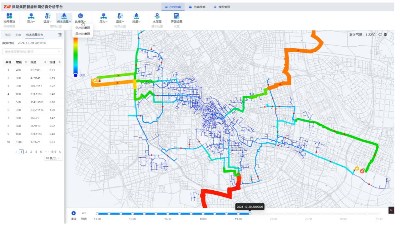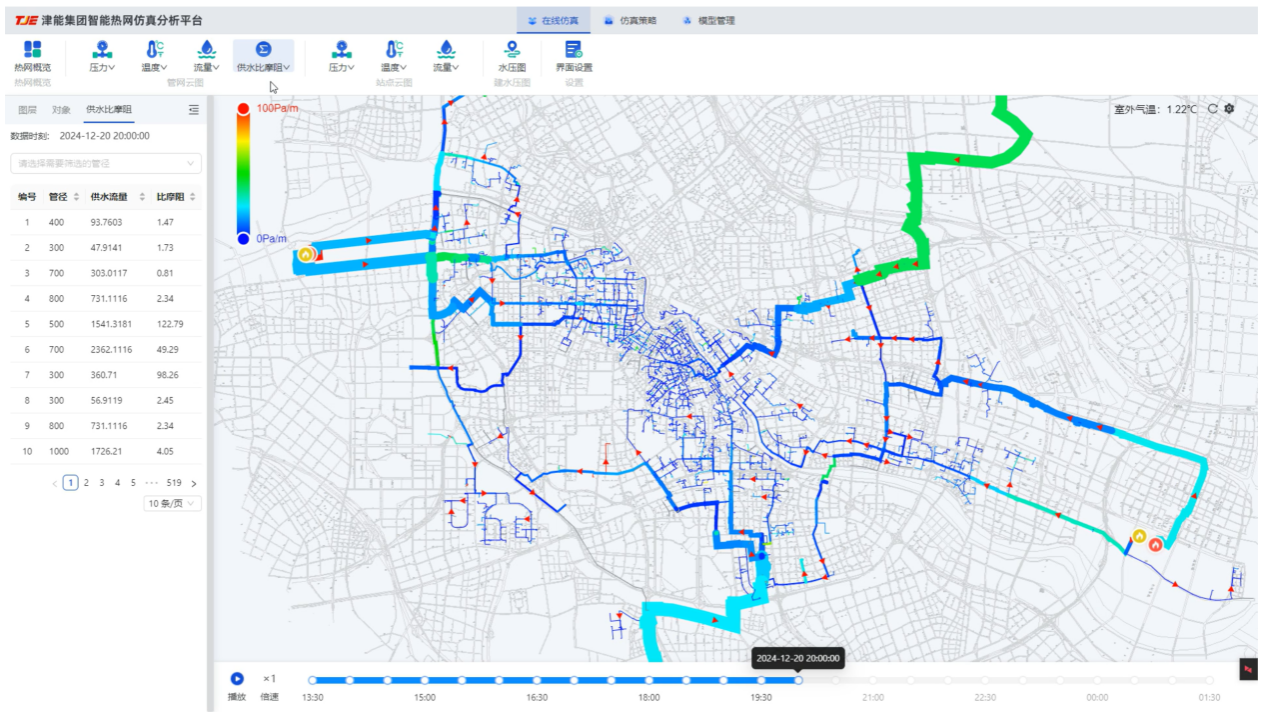 图4 天津市中心城区大热网比摩阻分布的在线仿真