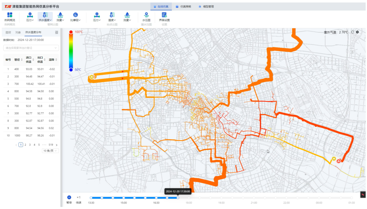 图1 天津市中心城区大热网动态温度分布的在线仿真