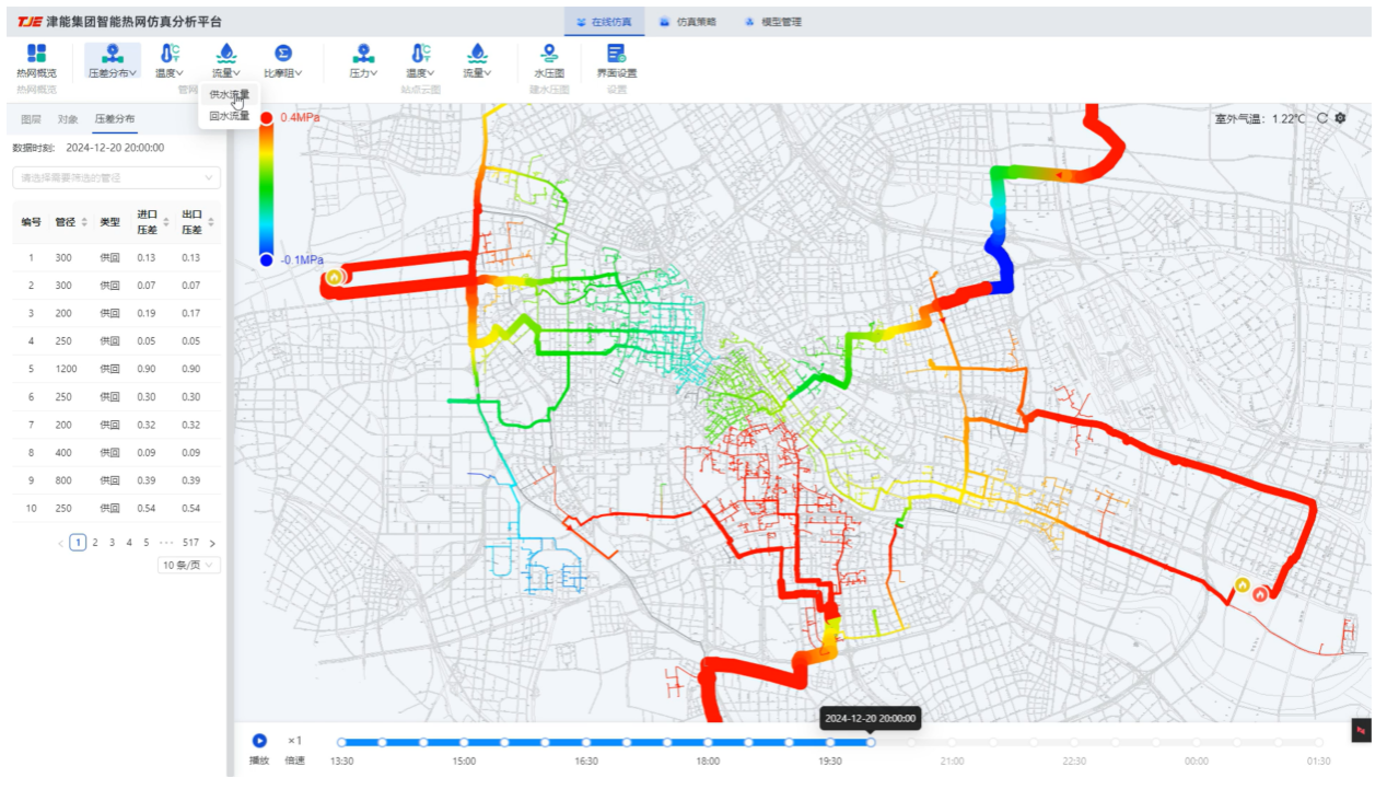 图3 天津市中心城区大热网动态流量分布的在线仿真