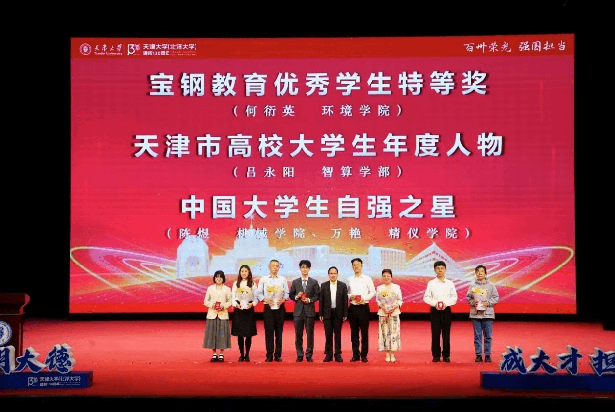 近日,天津大学2023-2024学年优秀学生表彰大会在北洋园校区求实会堂隆重举行,我院4名学生作为获奖代表上台领奖,25名获奖学生参加了表彰大会。