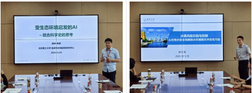 首先,展思辉院长代表学院致欢迎辞,随后从学科建设、师资结构、科研创新平台、教育教学成果、人才培养体系及标志性科研成果等多个维度,系统展示了学院近年来的跨越式发展成就。在专题报告环节,徐斌教授作《高品质饮用水中新兴水质问题研究与发展趋势》主题报告,聚焦饮用水安全保障领域,提出构建"安全-健康-优质"三位一体的饮用水质提升新范式;李芳柏教授带来《红壤铁循环及重金属污染治理原理》的专题分享,系统解析了土壤环境问题的时间-空间、自然-人类驱动的双重属性;曲申教授以《受生态环境启发的AI-结合科学史的思考》为题进行前瞻性报告,以创新视角探讨人工智能技术与生态环境科学的交叉融合路径;楚文海教授在《水质风险识别与控制-从饮用水安全保障到水环境雨天冲击性污染》报告中,阐述了从基础理论到工程实践的全链条水质风险管控体系。
