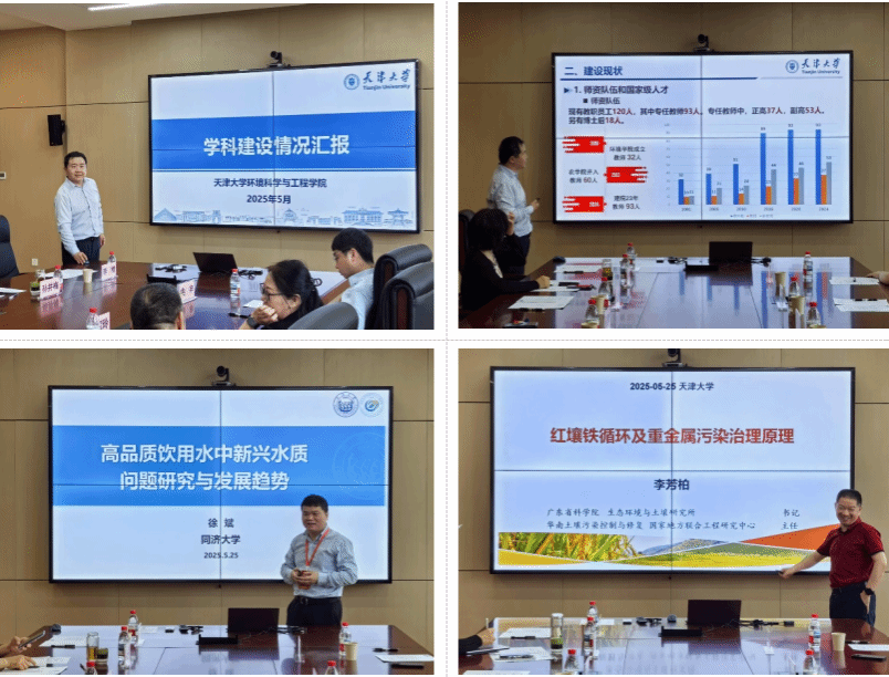 2025年5月25日,环境学院依托多介质学科交叉中心在北洋园校区第59教学楼A218会议室成功举办学术交流活动。本次活动特邀广东省科学院生态环境与土壤研究所李芳柏教授,同济大学徐斌教授、楚文海教授,北京理工大学曲申教授,吉林建筑大学苑宝玲教授五位知名学者莅临指导。会议由环境学院院长展思辉教授主持,副院长宋春风教授及学院骨干教师全程参与,吸引多名博士后、研究生踊跃参会。