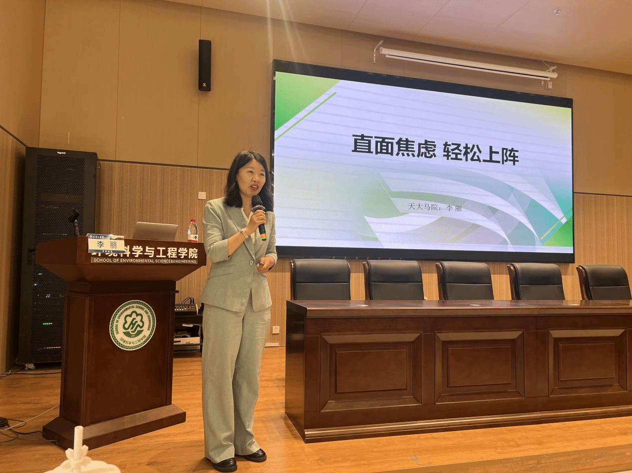 5月29日,环境学院党委举办第十五期思政大讲堂,邀请天津大学马克思主义学院李丽副教授作题为《直面焦虑,轻松上阵》的专题辅导报告。环境学院青年教师和学生齐聚一堂,开启了一场充实而有意义的减压之旅。报告会由环境学院党委书记杜云飞主持。