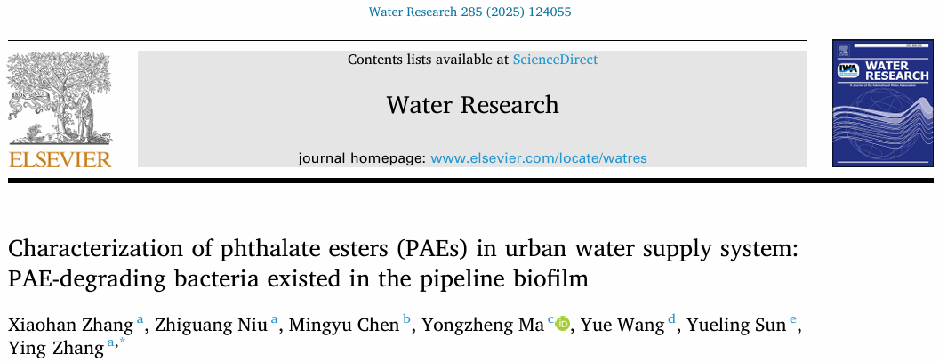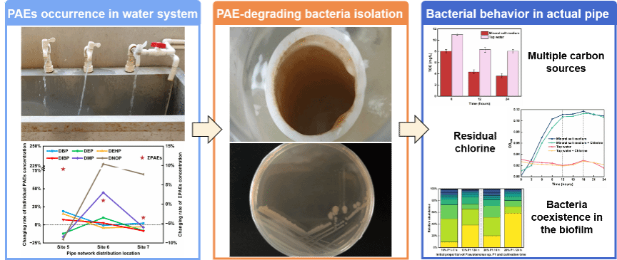 天津大学环境科学与工程学院牛志广教授团队在Water Research上发表了题为“Characterization of phthalate esters (PAEs) in urban water supply system: PAE-degrading bacteria existed in the pipeline biofilm”的研究论文。该研究聚焦供水安全,明确了塑化剂邻苯二甲酸酯(PAEs)在供水系统全过程中的赋存情况,从管壁生物膜分离得到了能够在实际管网环境中生存的PAE降解菌,并研究了其在其他碳源、余氯、生物膜细菌存在下的生长特性和PAE降解能力,有助于了解PAE的生化降解过程,保障居民用水安全。
