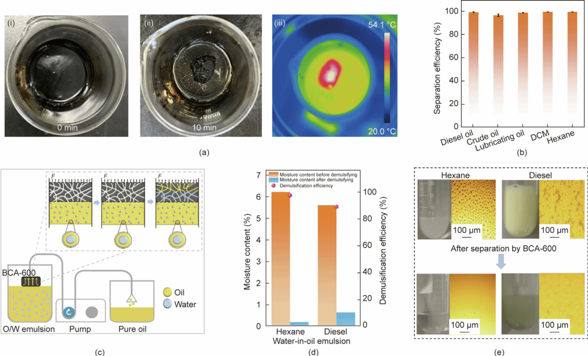 图1. 生物质炭气凝胶材料光热吸油特性与破乳性能示意图
