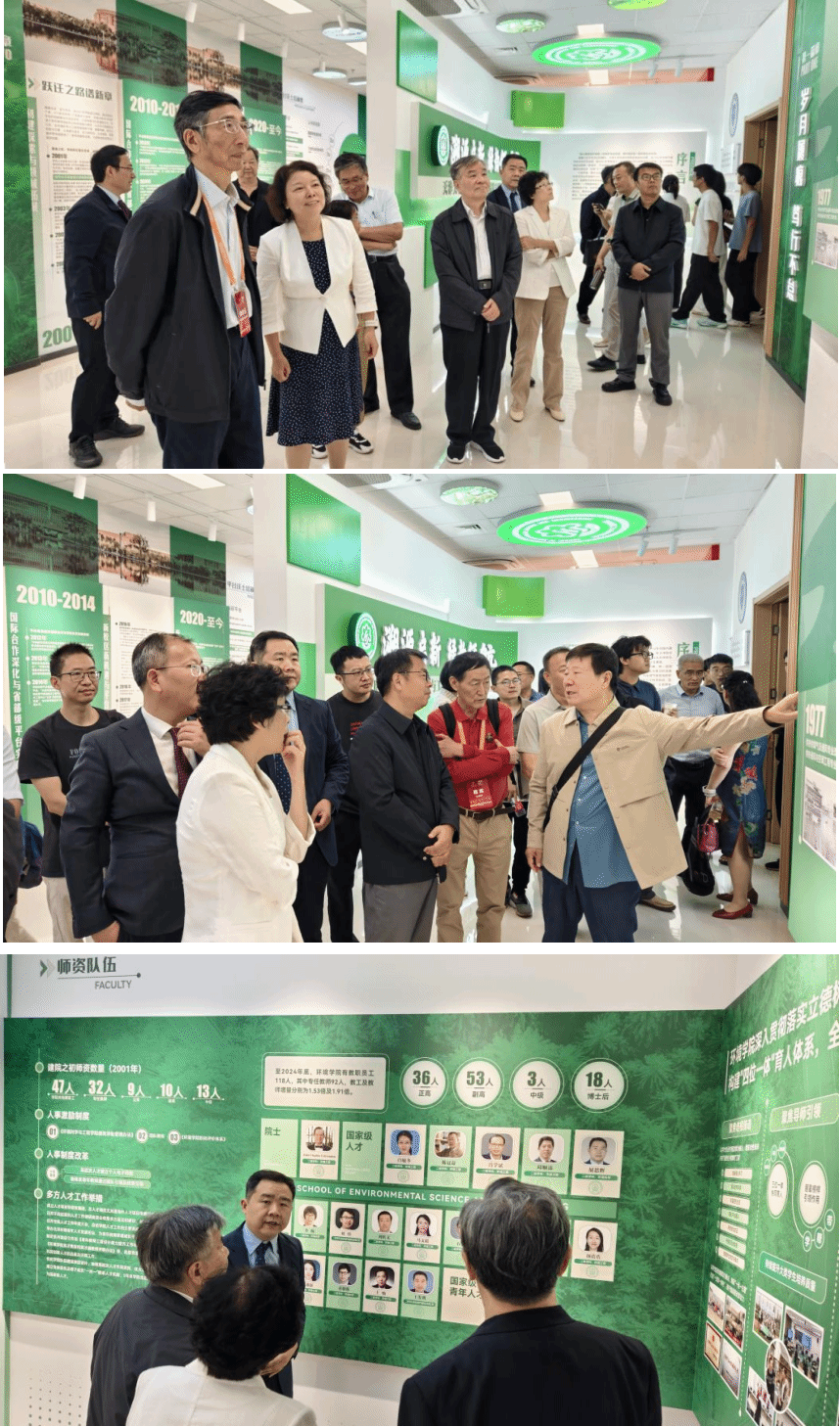 仪式上,杜云飞发表饱含深情的致辞,和大家一起回顾学院二十四载不平凡的创业与发展征程。致辞尾声,他庄重宣布:“天津大学环境科学与工程学院院史馆正式开馆!”话音刚落,全体师生和校友响起热烈掌声,与会领导共同为覆盖在院史馆牌匾上的红绸揭幕,一个镌刻着学院历史与精神的崭新地标就此诞生。仪式结束后,全体人员移步馆内参观,重温学院二十四载砥砺奋进的峥嵘岁月。参观过程中,校友们不时在馆内某一帧照片前驻足凝望,往昔的记忆随思绪缓缓展开。他们轻抚承载岁月痕迹的展陈,在低语与欢笑间,共同打捞沉淀在光阴深处的难忘故事。
