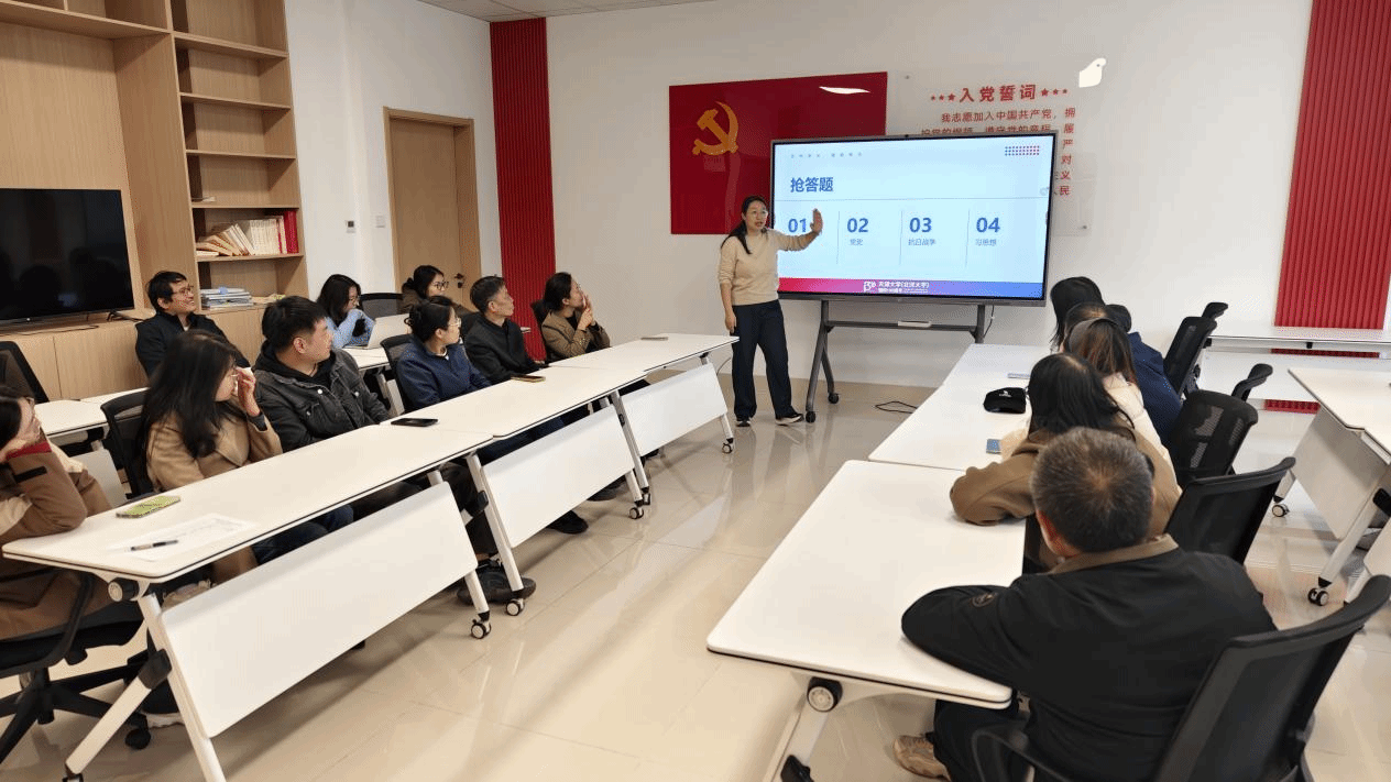 为深入学习贯彻习近平总书记重要回信精神,庆祝天津大学建校130周年,同时纪念抗日战争胜利80周年,激励广大教职工将爱国情怀融入立德树人的实际行动,2025年10月23日下午,环境学院工会于59教A103组织开展了“铭记抗战历史,传承百卅精神”知识竞赛活动,环境学院党委副书记、工会主席张灿与来自教学一线、实验室和办公室在内的20多位教师参加了此次活动。