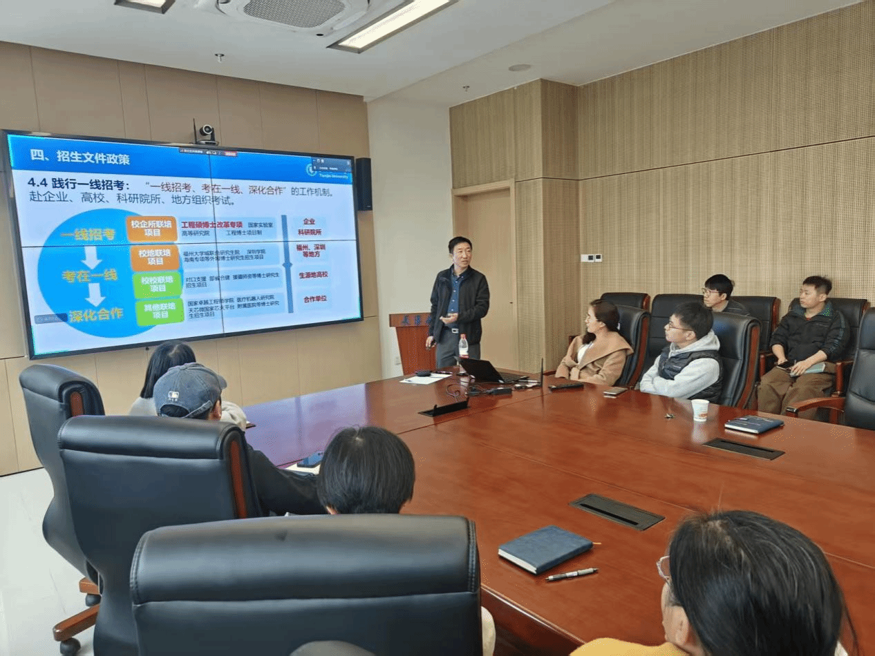 随后,卢铮松主任针对招生工作中的重点难点问题展开深入解读,尤其围绕招生计划分配中的主要观测指标、专项计划的招生类型及特色优势等内容,进行了细致讲解,帮助参会教师进一步厘清政策要点。在互动交流环节,参会教师结合自身教学科研实践,就专项计划中部分学科相关领域如何开展合作、“双限政策”中延期毕业率设置的合理性、科研育人费用的收取等问题积极提问,卢铮松主任与陈涛科长逐一耐心解答,现场讨论氛围热烈,有效解决了教师们的疑惑。