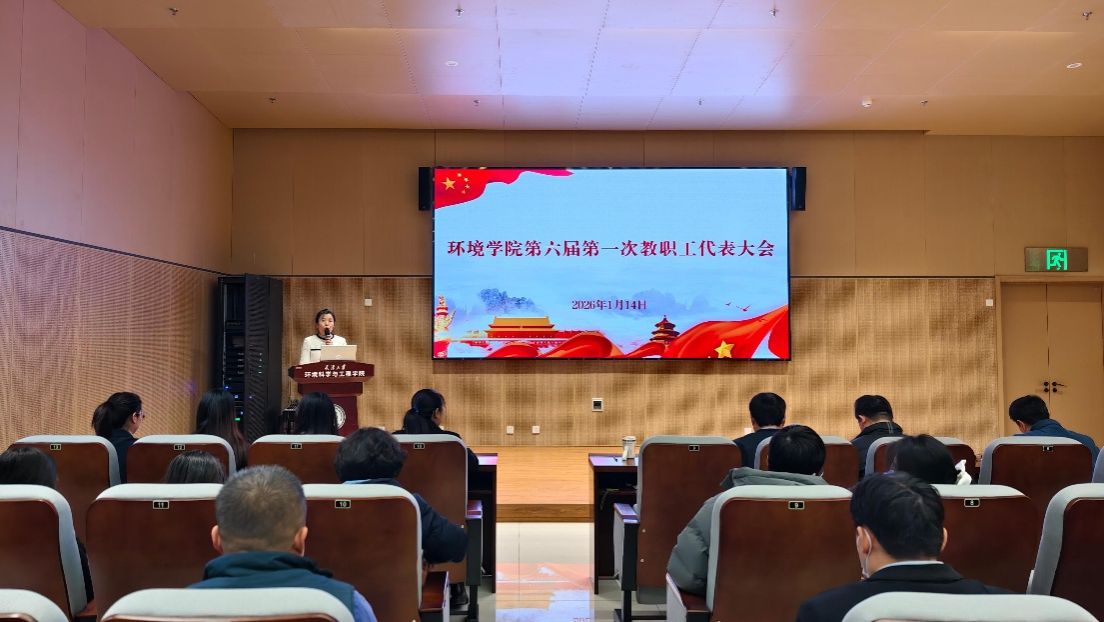 1月14日,环境学院在59楼B115报告厅举办第六届第一次教职工代表大会。会议由学院党委副书记张灿主持,党委书记杜云飞、院长展思辉出席会议,教职工代表50余人参加会议。