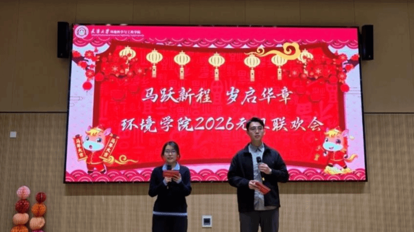2025年12月31日下午,环境学院在59楼B115报告厅举办“马跃新程,岁启华章”元旦联欢会。环境学院党委书记杜云飞,院长展思辉,党委副书记张灿,副院长杨冬、孙佩哲、吕石磊出席,与全院70余位教职工共迎新年。