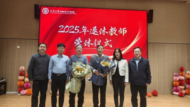 联欢会分两部分进行。第一部分是学院2025年退休教师荣休仪式,学院院长展思辉主持仪式。仪式以杜书记代表学院领导班子讲话开场,他表达了对朱能、郎铁柱两位荣休老师的祝福,向所有支持环境学院发展的教职员工表示感谢,鼓励全体教师在新的一年再接再厉共创辉煌;之后杜云飞书记和展思辉院长为两位荣休老师送上荣休纪念礼物,青年教师代表杨永奎、赵靖向他们奉上鲜花。另外,环境学院精心准备的荣休教师纪念视频回忆了两位荣休老师多年工作的点点滴滴,之后两位荣休教师依次发言,细数数十载教书育人的难忘岁月,言语间满含对学院的感恩之情,更流露着对学院未来发展的深切牵挂。