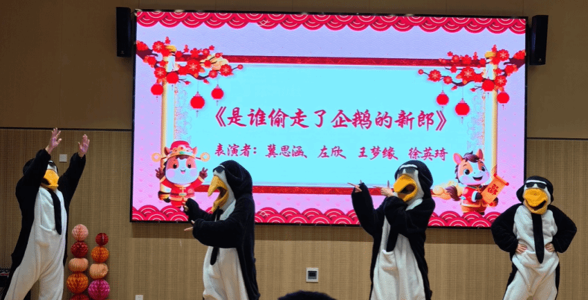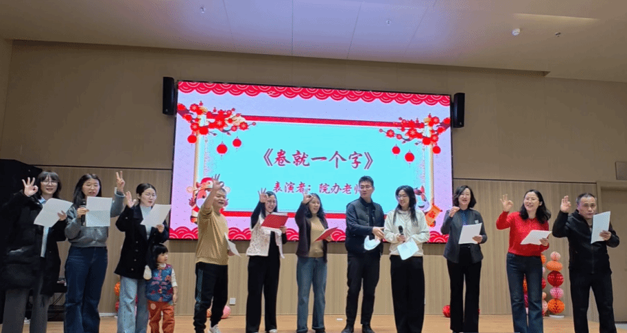 第二部分是联欢会节目表演和游戏环节。来自三个系和学院办公室的老师们以及研究生新生代表们纷纷登台献艺,团队舞蹈、独唱、合唱、改编歌曲、钢琴四手联弹等精彩节目不断上演,为现场观众奉上一场精彩纷呈的视听盛宴。节目中间穿插着的精彩纷呈的小游戏,同时还有环境学院领导和各系的负责人纷纷登台给老师们进行新年祝福,让现场氛围一次次达到高峰,欢声笑语弥漫在报告厅中。最后,在大家共同的新年祝福声中,本次“马跃新程,岁启华章”元旦联欢会圆满结束。