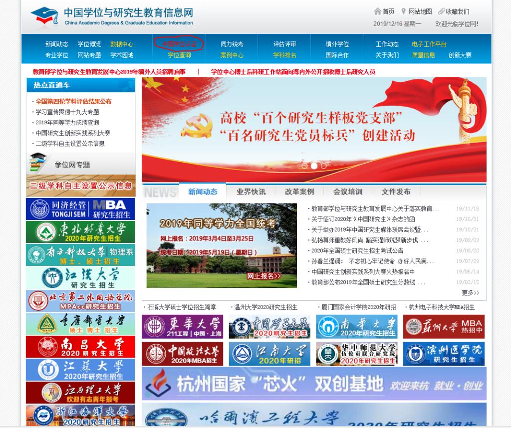 1.搜索“学位网”,点击“中国学位与研究生教育信息网”(http://www.cdgdc.edu.cn/)。
