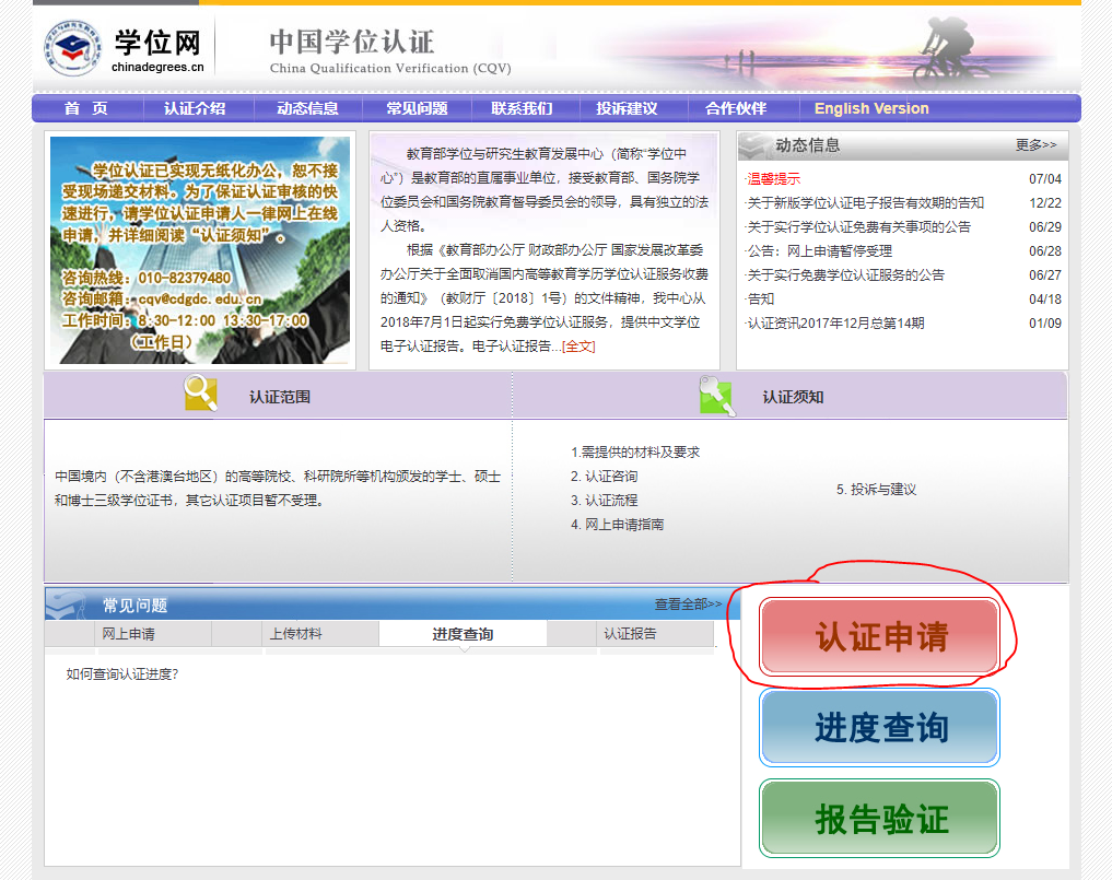 获得学位后,若需要进行学位认证(学历认证问题请前往学信网),请按照以下步骤进行操作。注意!我校不针对任何公司与个人进行学位认证,唯一的认证途径为学位网。如有账号注册问题、学位认证未通过等问题,请咨询学位中心客服电话:010-82379480。