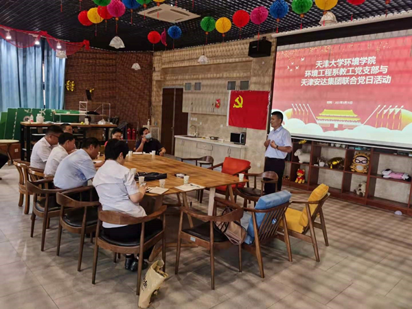 2021年8月30日下午,按照学校、学院党史学习教育阶段的统一部署安排,为促进党史学习教育和支部党建工作的深度融合、统筹推进,进一步增强党性观念,涵养初心使命,感受民族精神的时代内涵,环境学院环境工程系教工党支部邀请天津市安达集团党群工作部、行政技术部有关领导及党员代表开展了联合党建主题党日活动。