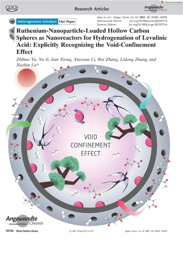 文章信息: Ru Nanoparticles Loaded Hollow Carbon Spheres as Nanoreactors for Hydrogenation of Levulinic Acid: Explicitly Recognizing the Void-Confinement Effect Zhihao Yu, Na Ji, Jian Xiong, Xiaoyun Li, Rui Zhang, Lidong Zhang, Xuebin Lu* Angew. Chem. Int. Ed., 2021, 60 (38): 20786–20794. 原文链接:https://doi.org/10.1002/anie.202107314