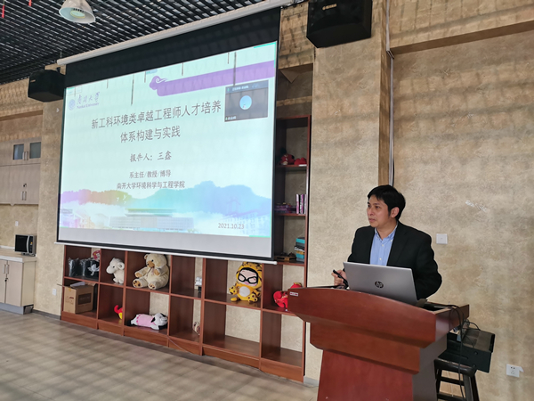 本次交流研讨会安排了8个报告,其中特邀南开大学环境学院环境工程系主任王鑫做题为“新工科环境类卓越工程师人才培养体系构建与实践”的报告。王鑫教授详细介绍了南开大学和环境学院关于新工科部署建设情况及采取的有效措施,为我院的新工科建设开拓了思路。