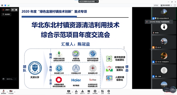 2021年11月7日,由天津大学作为项目牵头单位承担的国家重点研发计划“绿色宜居村镇技术创新”重点专项“华北东北村镇资源清洁利用技术综合示范”项目中期执行进展交流会成功召开。由于近期多地出现疫情,形势严峻复杂,为响应国家卫健委防控政策要求,年度交流会以线上腾讯会议的形式召开。