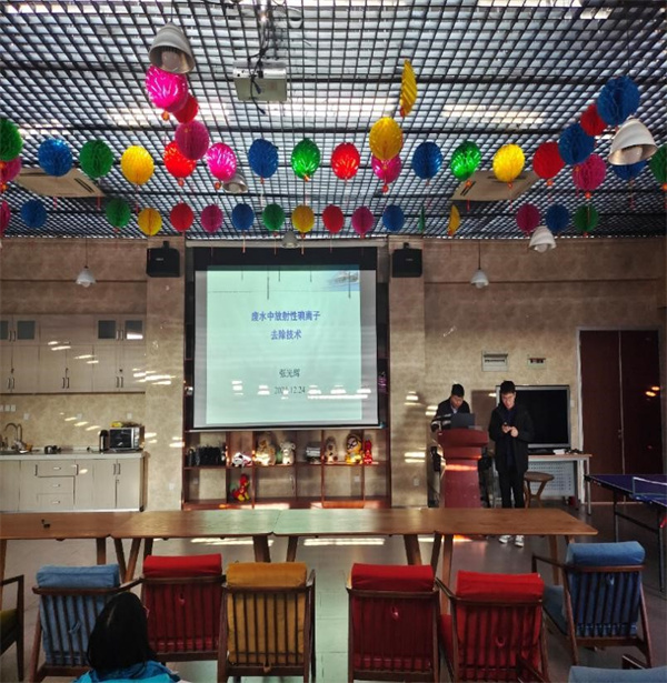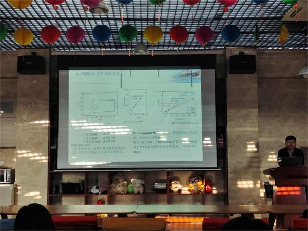 张光辉老师进行了题为“废水中放射性碘离子污染去除关键技术研究”的报告。张老师首先对课题的研究背景进行了介绍:核能发电是低碳电力供应的重要组成部分,是我国“碳达峰∙碳中和”战略目标实现的重要环节。近年来我国核电发展迅速,2020年我国核电量升至世界第二,根据《“十四五”规划和2035远景目标纲要》,至2025年,我国核电运行装机容量达到7000万千瓦。核能的开发利用的同时,产生了相当数量的放射性废物,一旦突发事故,放射性废物的泄漏会可能会造成生态灾难。1986年前苏联切尔诺贝利和2011年日本福岛311核事故,给人们敲响了警钟。核电站日常运营可产生15种碘同位素,放射性碘是核事故中的主要放射性污染物之一,其迁移性极高,极易逃逸,对环境的危害性尤其严重,是最难处理的放射性核素之一。本次报告主要针对废水中的放射性碘离子污染,介绍了碘离子常规处理和应急去除的相关技术,实现碘污染的有效控制,避免碘离子对水生态系统和公众健康的威胁。张老师对研究中使用的吸附剂表征、性能、不足等进行了详细的介绍。随即又对吸附动力学和热力学进行了讲解。接着,张老师介绍了影响吸附性能的一些因素,如:压力、初始浓度、pH等。最后,张老师又给大家科普了一些关于辐射防护的知识,同学们都感觉受益匪浅。
