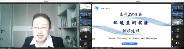 哈尔滨理工大学颜婉茹老师以“基于sc教学理念的环境监测实验课程建设”为主题作了相关报告,介绍了混合式教学案例,采用分组机制,因材施教,充分利用线上资源,线上线下教学相结合,更大限度地提高了学生的主观能动性。