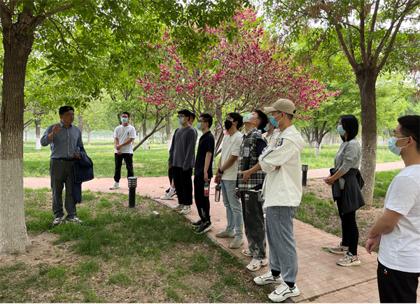 沿着中轴一路向西,活动气氛逐渐升温,老师和同学们之间迸发出了求知的火花。黄老师从专业的角度向同学们揭秘了世纪大道的银杏为何生长不均、如何生长改良等,同学们纷纷表示大开眼界,受益匪浅。