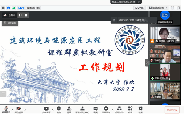 为贯彻落实“十四五”教育发展规划有关部署,探索推进新型基层教学组织建设,根据《教育部办公厅关于公布第二批虚拟教研室建设试点名单的通知》(教高厅函[2022]13号)和虚拟教研室建设专家组发布的《关于加快推进虚拟教研室试点建设工作的通知》要求,2022年7月8日,建筑环境与能源应用工程(以下简称建环)课程群虚拟教研室启动会暨第一次工作会议以线上形式举行。