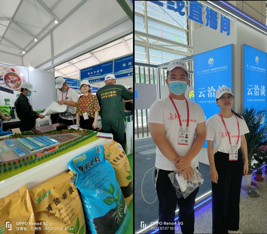 7月7日,第二十八届中国兰州投资贸易洽谈会在金城兰州正式拉开帷幕,天津大学环境学院挂职干部、宕昌县乡村振兴局副局长黄俊,带领大学生创业实践团队与甘肃本然农业生物科技有限公司一起携产品精彩亮相。其中,有机肥、栽培基质、育苗基质等产品获得一致好评,引起了媒体关注。
